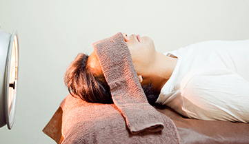 頭部に人工太陽光線の照射を加えます。その温熱効果で毛細血管の拡張・血流の増大・ビタミンD3の生成など様々な効果が得られ太くて元気な髪が生えてきます。