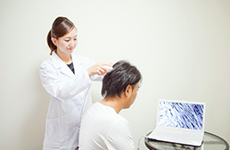 カウンセリングが済みましたらマイクロスコープで頭皮のチェックをします。頭皮の健康状態、毛穴の汚れ具合、角質や毛髪の健康度、健康の発育状態などチェックすることで、脱毛原因などをさらに詳しく解明します。